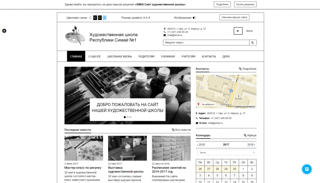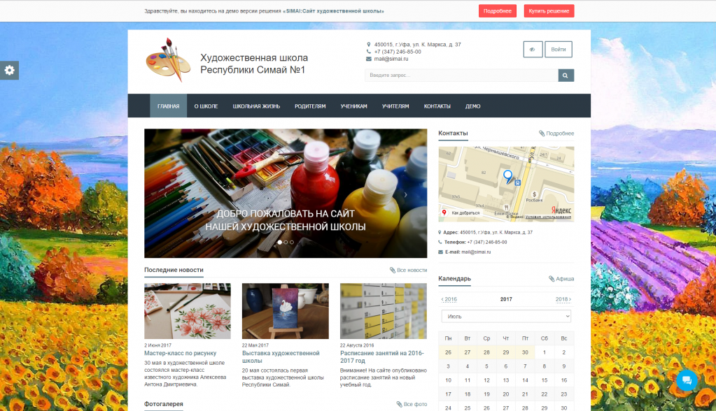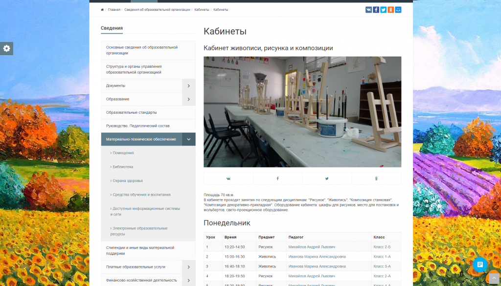 - Продуманная и удобная структура сайта, разработанная специально для художественных школ.