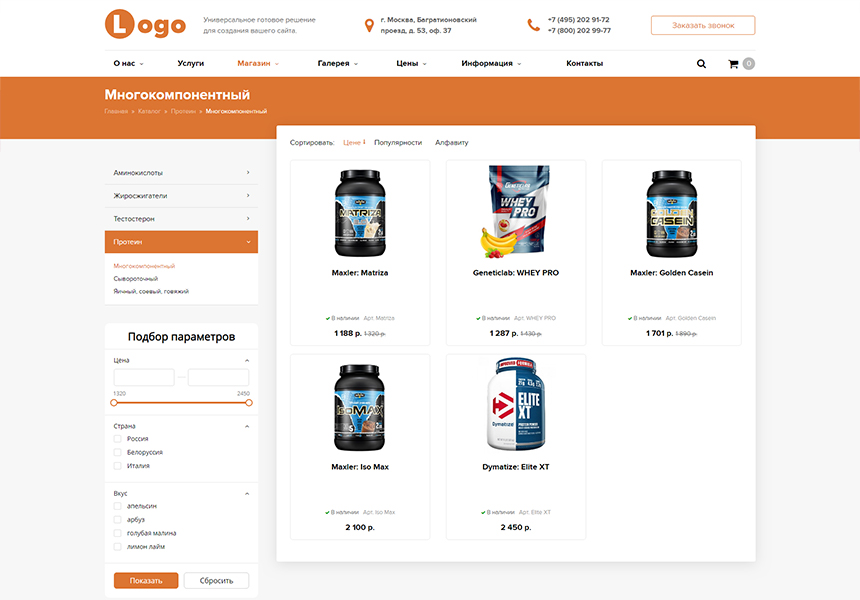 Также шаблон подходит под универсальный сайт компании, универсальный интернет магазин на редакции Старт.