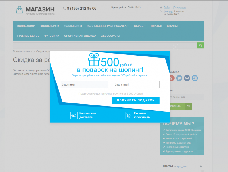дарить скидки пользователям за регистрацию, а также мотивировать посетителей сайта с помощью