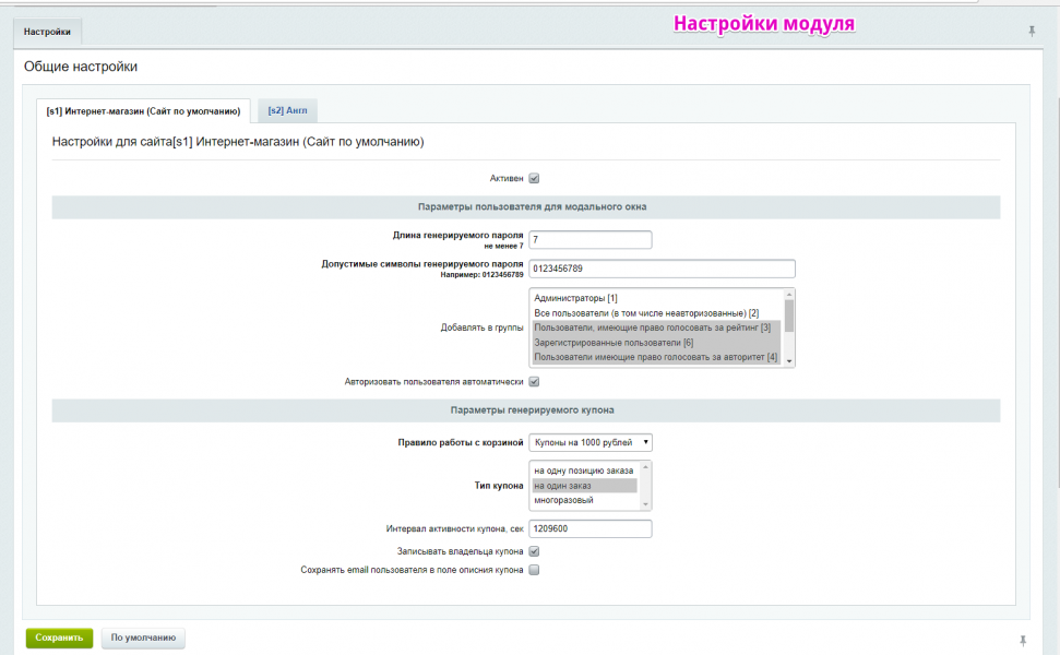 генерирует скидку за регистрацию не зависимо от модального окна, поэтому если нет необходимости размещать всплывающее окно, а только нужно дарить скидку при регистрации пользователя любым способом, то модуль тоже подойдет.