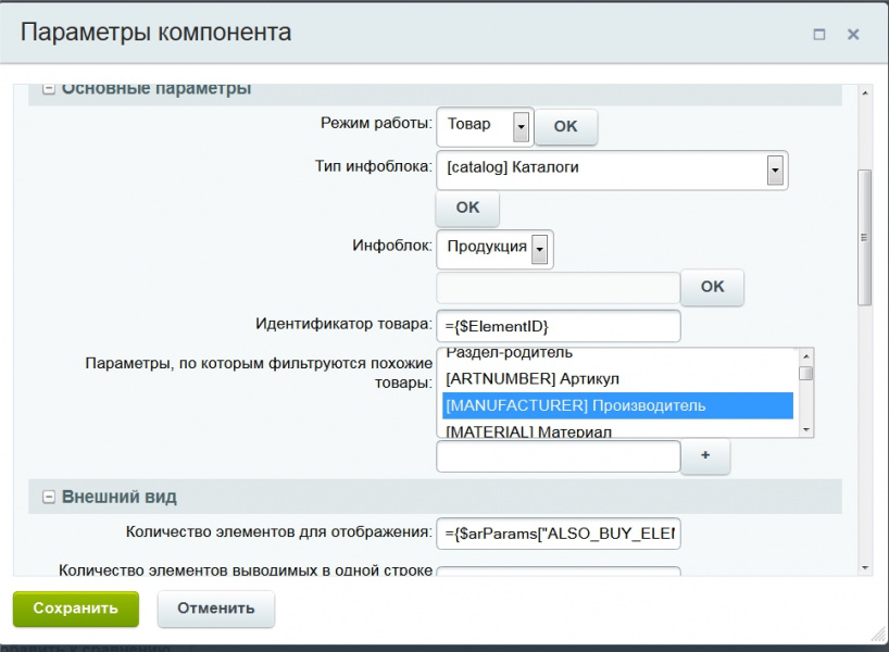 Компонент позволяет выводить похожие товары. Работает в двух режимах: