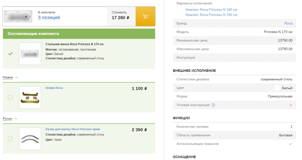 Например, при покупке ванны пользователю можно