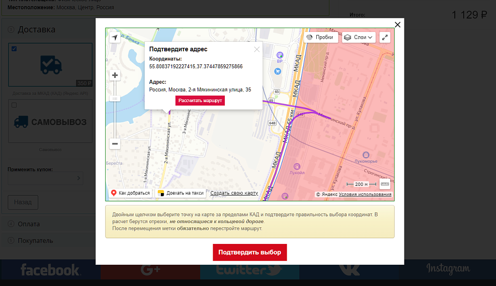 MDSoft: Модуль расчета доставки за МКАД на 1С-Битрикс