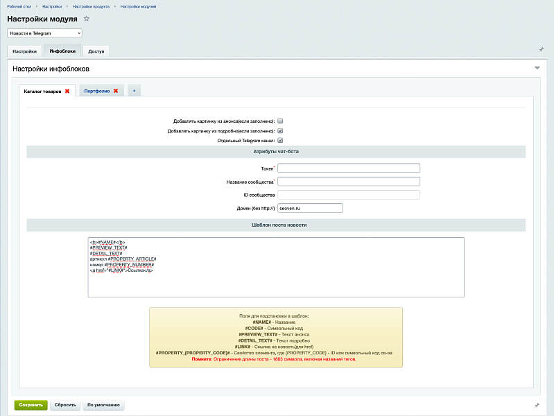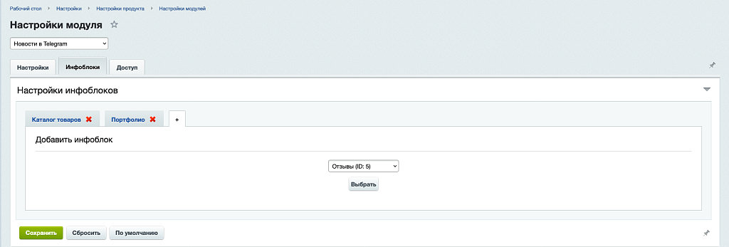 Новости в Telegram на 1С-Битрикс
