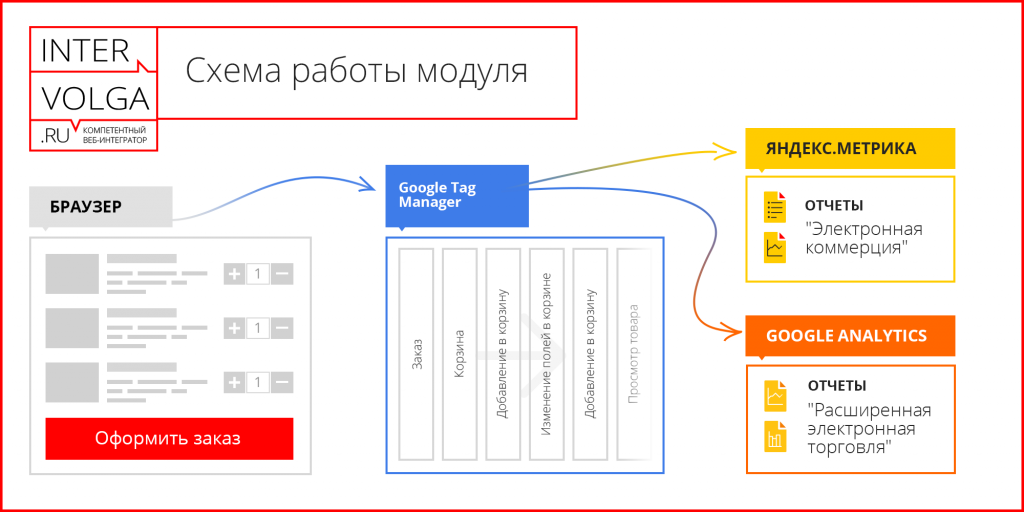 Модуль позволяет передавать данные о действиях посетителя магазина в отчеты: