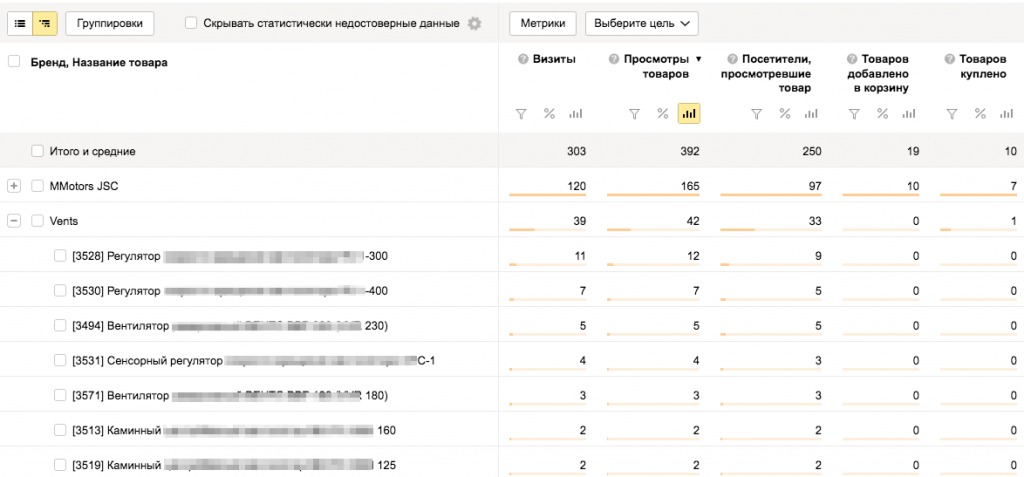 - “Электронная коммерция” Яндекс.Метрики,