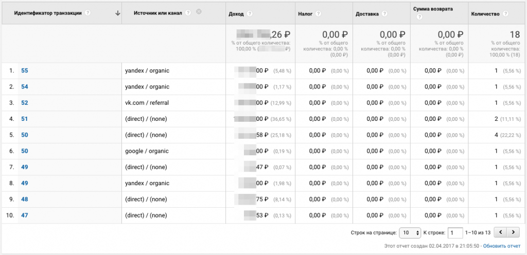 Эти данные можно использовать для оценки рекламных каналов и настройки
