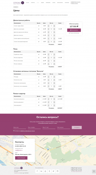 встроенный калькулятор на сайте позволяет рассчитать стоимость работ, сохранить их и распечатать