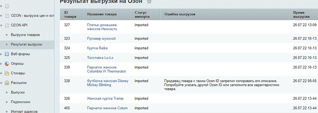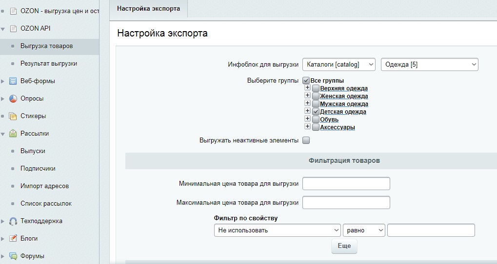 Ozon API- Выгрузка товаров и цен на Озон на 1С-Битрикс