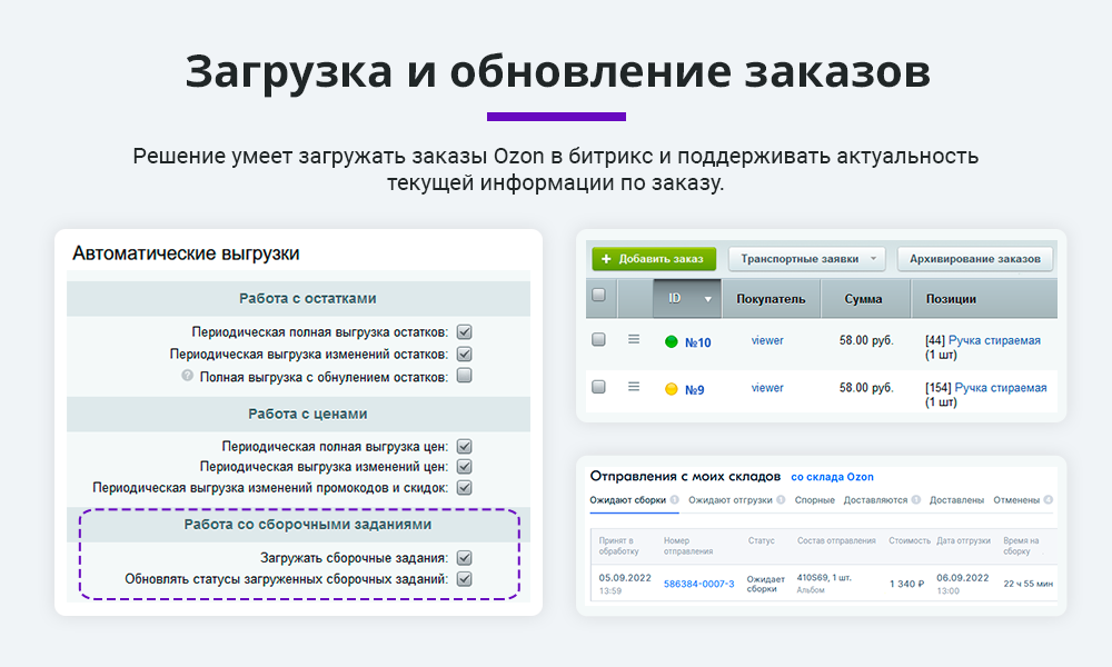 Интеграция с Ozon (Озон). Цены, остатки, заказы, статусы, акты на 1С-Битрикс