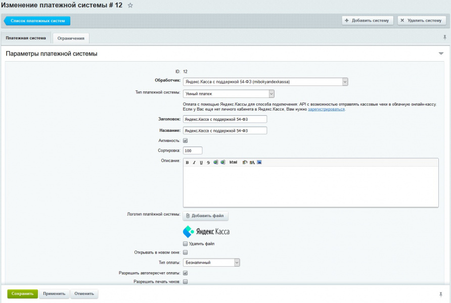 Модуль позволяет производить оплату на сайте с использованием платежной системы Яндекс Касса по новому протоколу API на любой редакции Битрикса (в перспективе добавление дополнительных платежных систем, следите за обновлениями продукта).