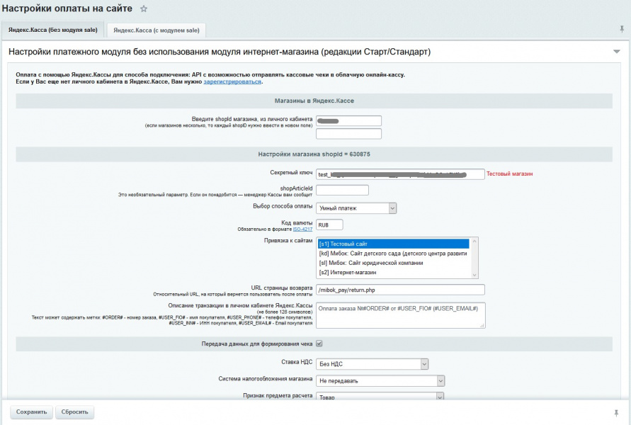 - обработчик платежной системы для оплаты товаров в интернет-магазине при оформлении заказа, доступный для редакций "Малый бизнес" и "Бизнес"