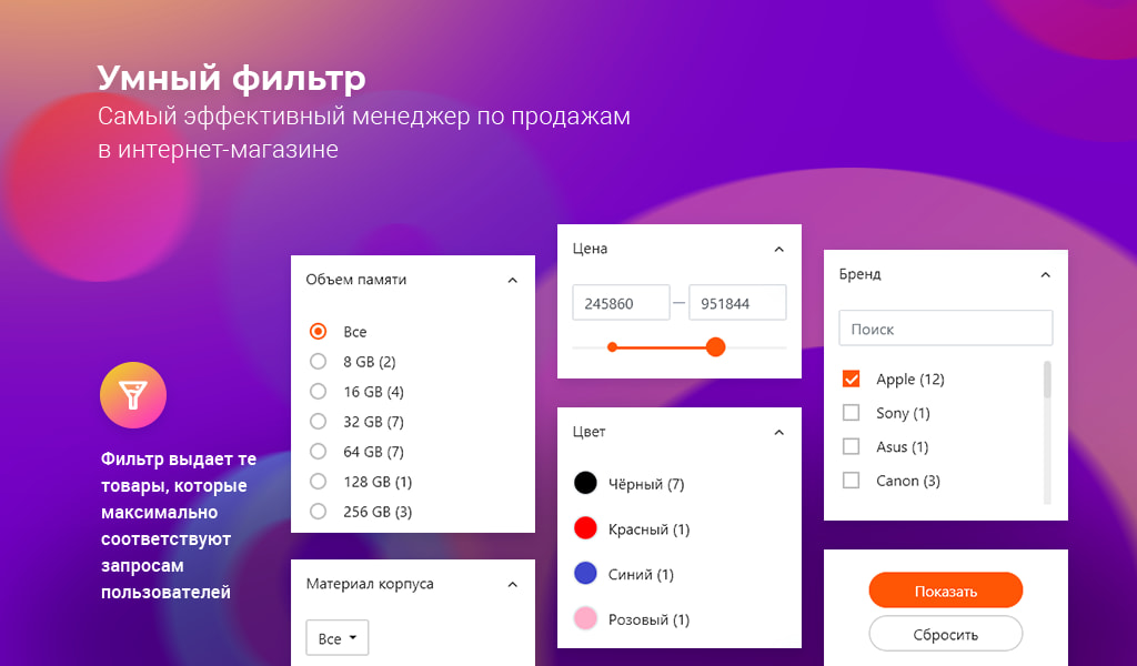 Каталог товаров в этом решении удобен и функционален. У услугам клиентов предоставляются: